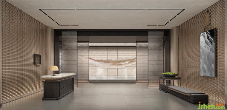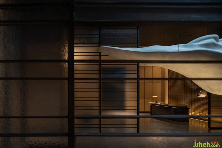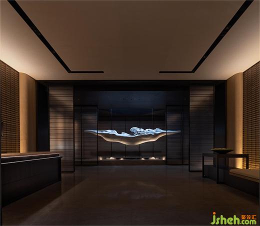 踏入接待前厅,暖棕色的主调连同微暗薄明的光环境,氤氯而出胶片电影质感的复古意味,穿越时间甬道的沉浸式场景就此徐徐铺展。前厅中布设形态柔美的海浪艺术装置,装修设计用艺术语言点出空间的精神内核,写就东方风雅。