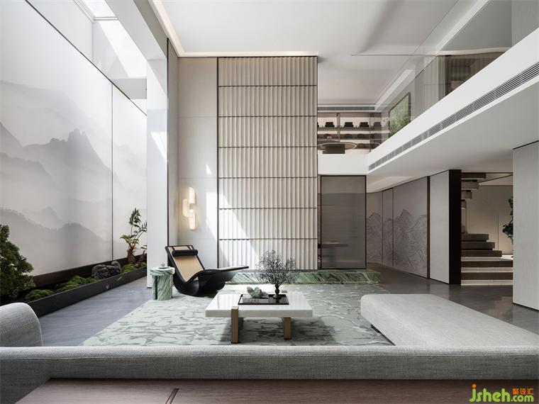 雨过天青云破处,这般颜色做将来。融合宋瓷雅青之色,以自然材料呈现古朴质感。在风烟俱净、样板房设计天山共色的简素优雅空间里,日常生活便宛如一首婉约宋词轻吟浅唱。