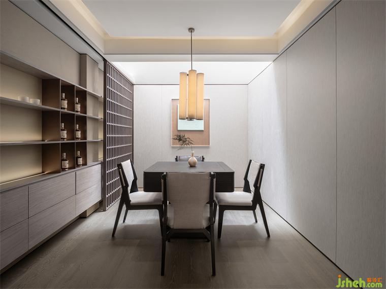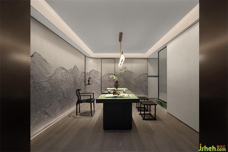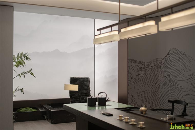 一壶好茶,三五好友;坐而论道,对墨挥毫,生活的雅致淋漓尽致。啜饮香茗与寄情山水,样板房设计往往密不可分。在茶室内以疏朗线条勾勒山石轮廓,将奇石、绿植布置水景小品,如身在山林庭轩小饮,在品茗之中收获“独与天地精神往来”的清幽之感。