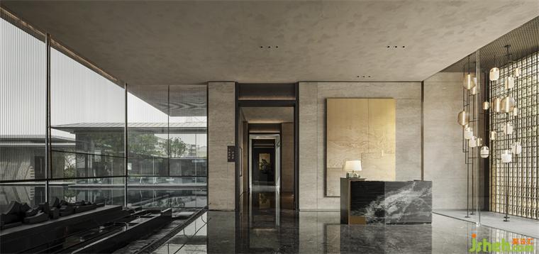 接待大厅模糊了与水景的界限,湖光潋滟中,树影婆娑,装修设计四时之光景,天地之从容,皆纳入空间规划,成全东方式的隐奢之美。