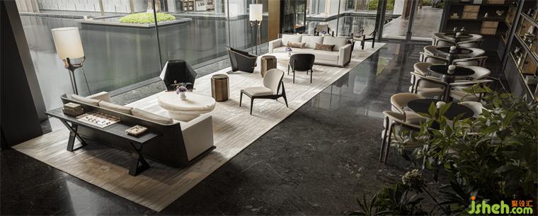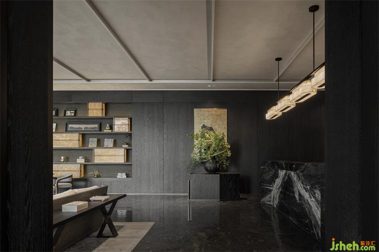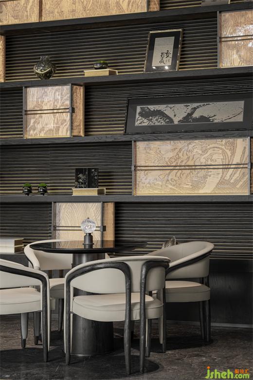 水景窗前,山水装置以现代手法让复杂的东方意象有了更简洁的呈现形式。装修设计凝练苏式建筑屋檐的线条和体块,用“立体构成主义”的方式编排出抽象的雕塑裝置,辅以悠悠水景,为这座微缩的城景注入了苏式灵魂。