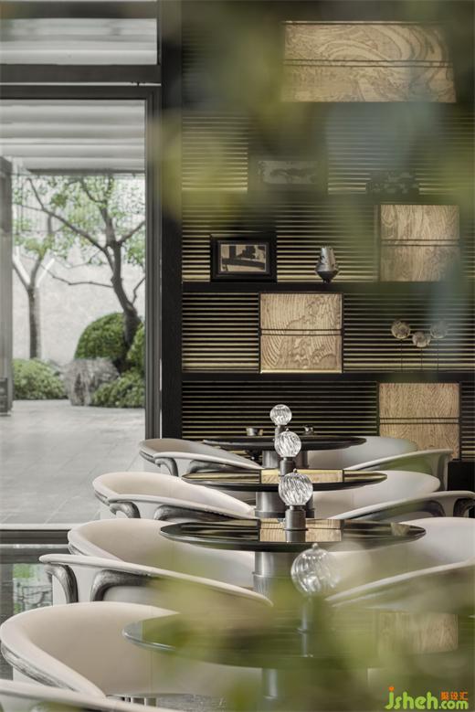 空间设计化韵于境,布局陈列典雅有序,苏式风雅化形成真。将框景、借景等造园手法运用到空间布局中,经艺术剪裁,速成诗意。足不出户,亦能透过花窗、树影将室外景致引入室内。雅聚于此,会所设计仿佛“姑苏繁华图”徐徐展开,视线所至尽显隽美精微。