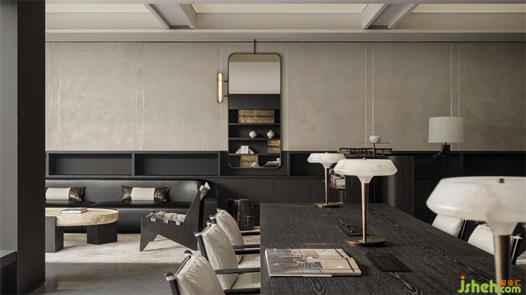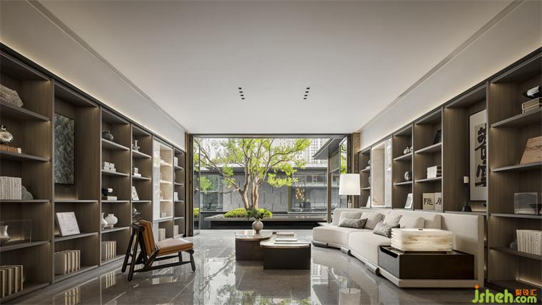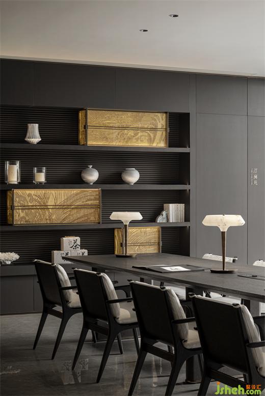城市会客厅涵盖会客观景、共享餐吧、书吧等,各空间仿佛悠浮湖上的岛屿,移步异景,妙趣横生。会所设计以“曲折尽致,深远不尽”之意趣,巧于因借,精在体宜,使自然的变化、时间的流淌与空间呼应共鸣,营造一方超然物外的雅致空间。