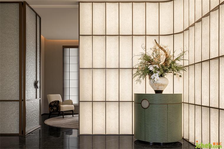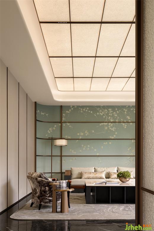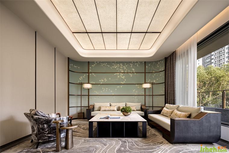 室内四季流转,窗外景致一览无遗,窗内诗意画作与之呼应。胜景与意境相融,留白与节奏把控严谨,不着痕迹地营造出难以复刻的宁静与隐奢。