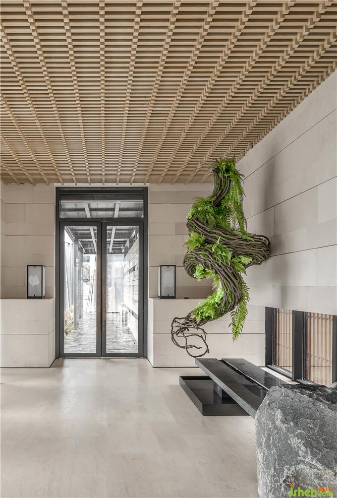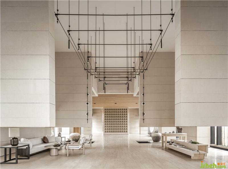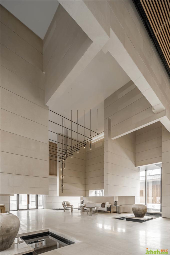 迎宾前厅明亮气阔,简洁的空间氤氲着禅风的气宇风华,色彩搭配极简素雅。一勺水,洗净铅华,传递美好祈愿,宛如新生。