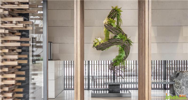 大厅墙上艺术装置“菩提”,意为觉悟、智能、知识、道路之意,有断绝烦恼而成就涅盘智慧象征。菩提子为最常见的佛缘之物,在此也见证着室内的平静与美好。