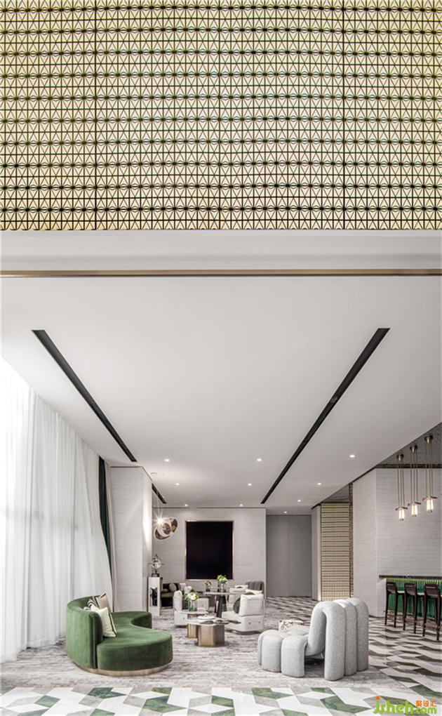 贯穿主题的菱形墙面,同时通过大型的艺术装置灯具,形成整个空间的视觉聚焦核心,严谨极致的打造让项目最终呈现出了璀璨宝盒的主题。