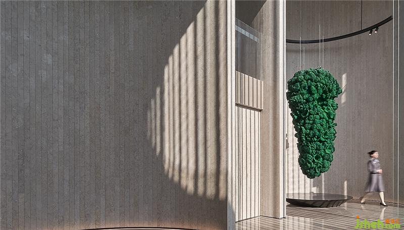 从天垂降的艺术装置“穴栖群落”,是一个聚落昆虫巢穴般的大型垂坠式盆景。光芒从海绵型雕塑流洩,仿彿自身带有能量的生命体,以强烈的视觉语言,唤醒人对原始自然的回归欲望。