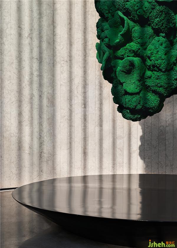 阳光雨露滋养万物生长,“穴栖群落”于此获得能量,设计师尝试以一枚苔藓或一只昆虫的姿态体会宇宙自然,在温暖与克制之间游刃有余。大片的落地玻璃,变成一种空间的美学形式,室内与室外的空间没有绝对的隔断,阳光洒在室内,又看得见风景,一种通透的感觉。人与自然可以有“隔”,可是这个“隔”又是可以连接的。