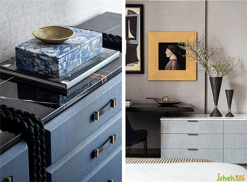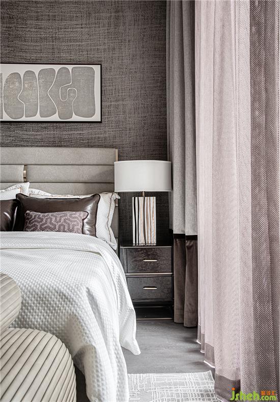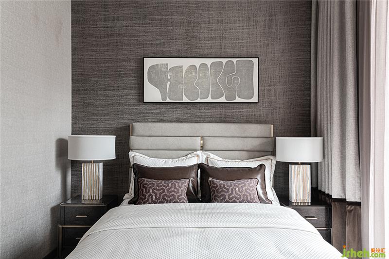 艺术是简洁的智慧,床头背景画作用抽象的方式讲述空间美学。房间混搭布面、陶瓷、仿古铜拉丝不锈钢等材料,利用硬材质与卧室软件的冷暖对比,呈现出的设计张力往往令人惊艳。