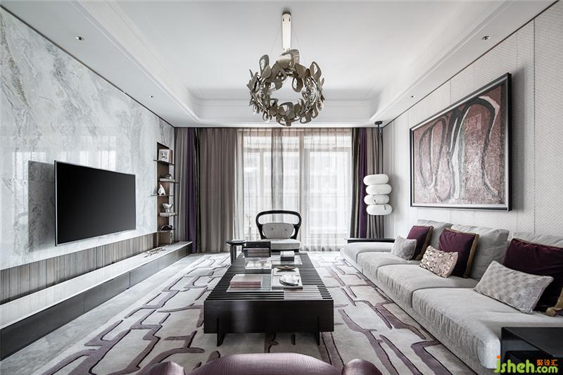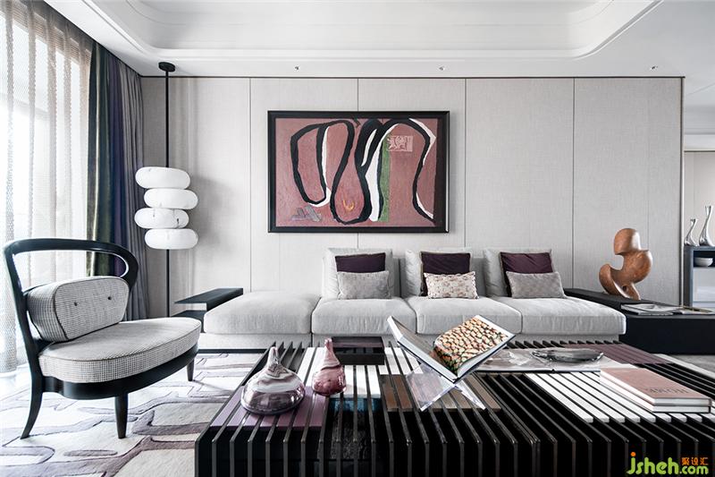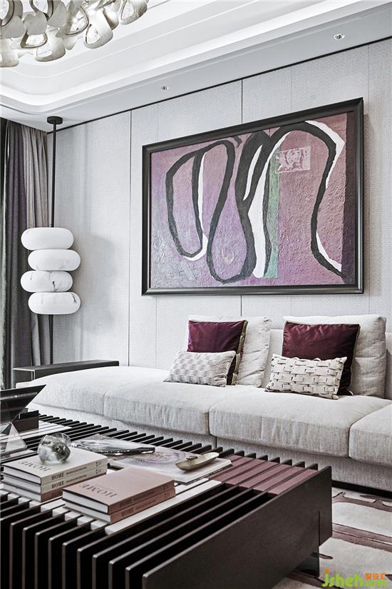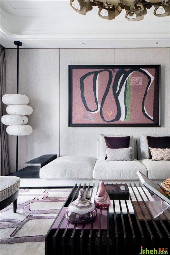 当我们进入这个空间时,捉摸不定眼前是过去还是未来,那是一种耐人寻味的时空理念。WJID用极具上海风情的粉紫色作为空间主基调。设计中将室内空间视为一张三度空间的抽象画,从上层的墙饰,中层的沙发,到透视茶几,展现一种循序渐进的,有如东方水墨式的层次美学。样板房设计
