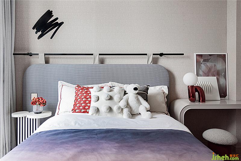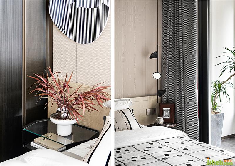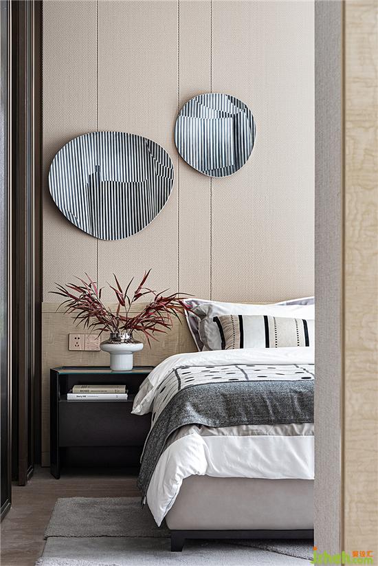 主卧房应该是个舒适的休息场所 ,它必须要是一个可放松的空间,让每天被忙碌生活追着跑的都市人得以喘息,沉淀,从而获得再出发的能量。样板房设计