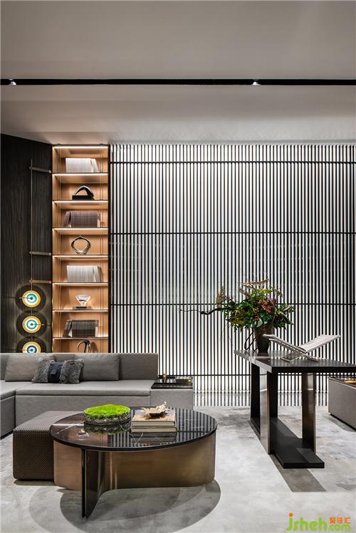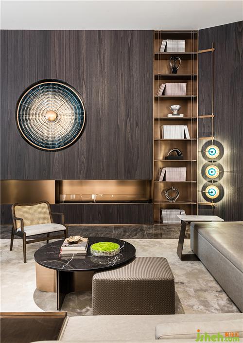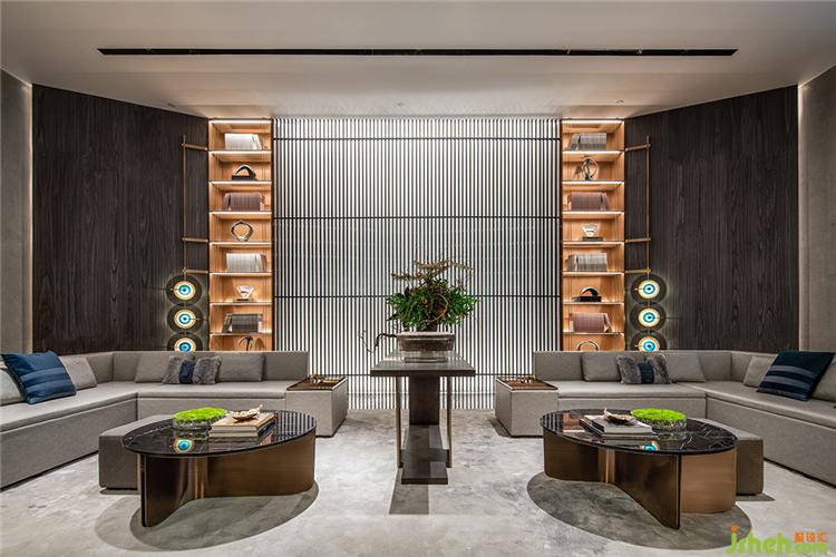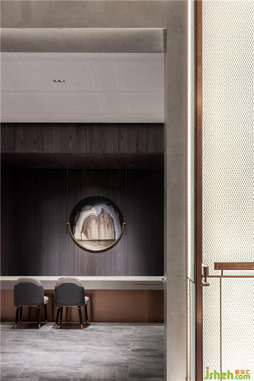 暖木、金属、皮革、布艺……材质元素如音符般跳跃在在空间内,把洽谈区的空间节奏、自然质感与人文感受连结起来。装修设计