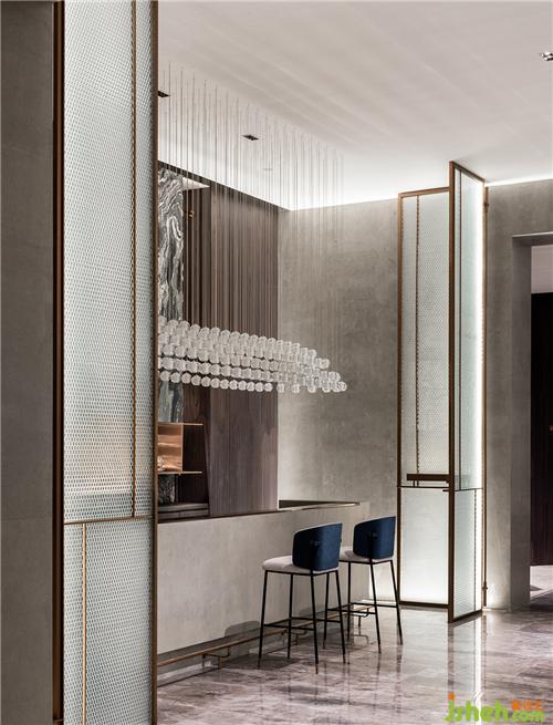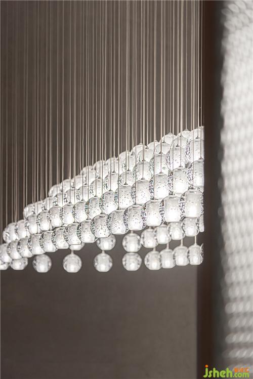 连绵成片的透明吊灯,在室内撒下一片星星点点,银波微漾,美轮美奂。满足功能需要的同时,也为空间笼罩上一层梦幻情致,模糊了现实与幻想的界限。