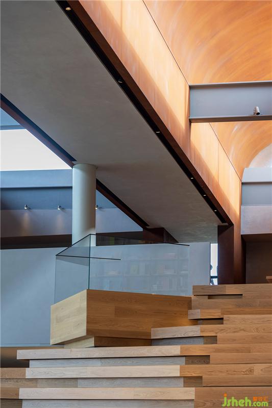 这种建筑的伦理功能也成为了一种公共功能,使个体通过建筑在彼此间产生联系。展厅与夹层之间的景观阶梯便体现了这种功能,是一个重要的空间节点。