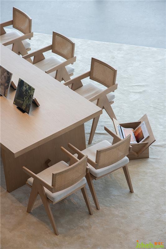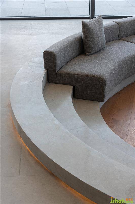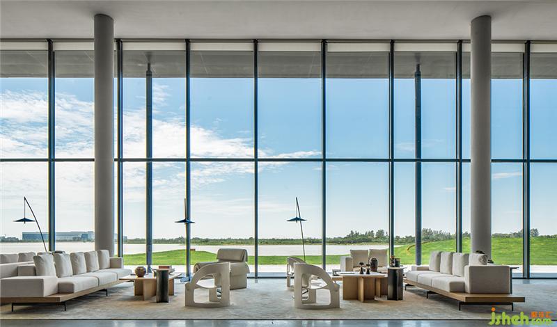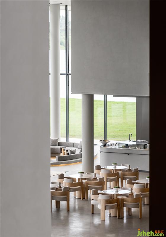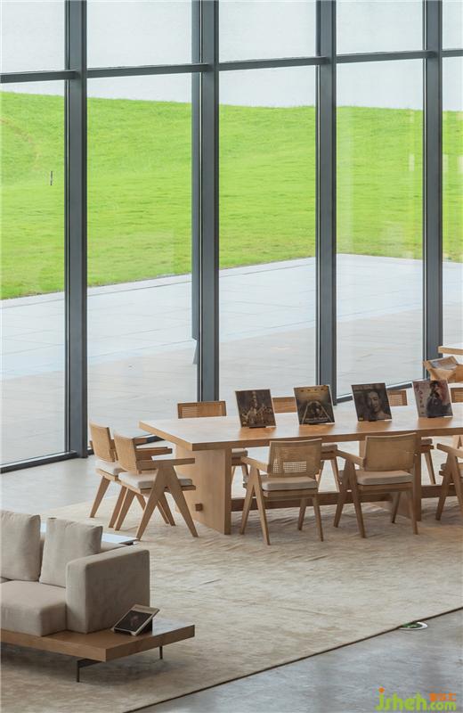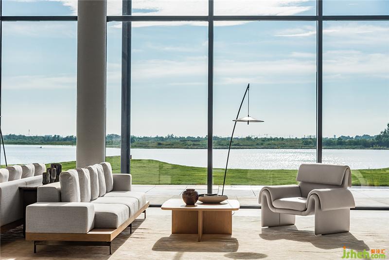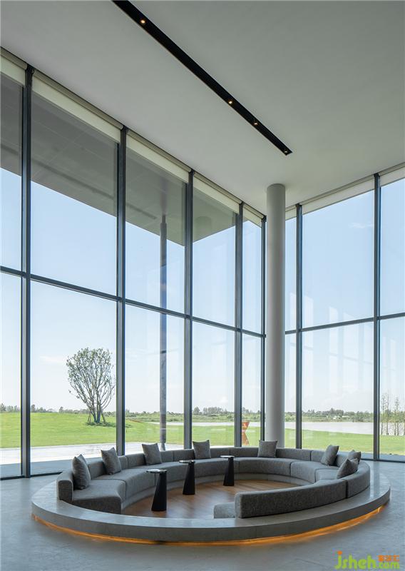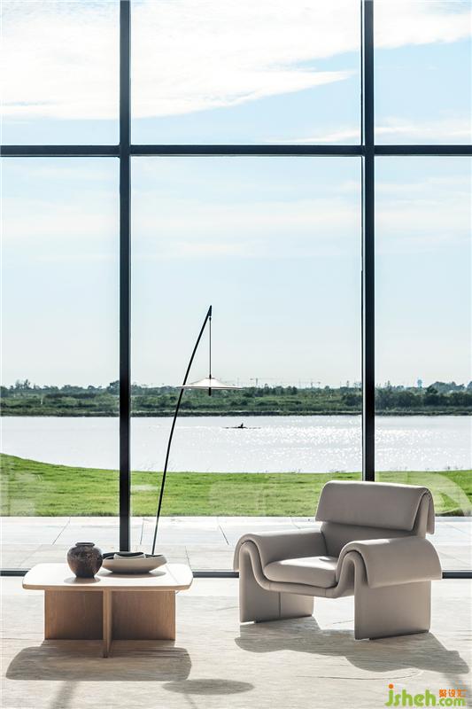 落地窗最大化地引入自然光,打通室内外,让空间更加通透。软装配色与下沉式洽谈区的结构呼应前厅,承袭简洁的质感。