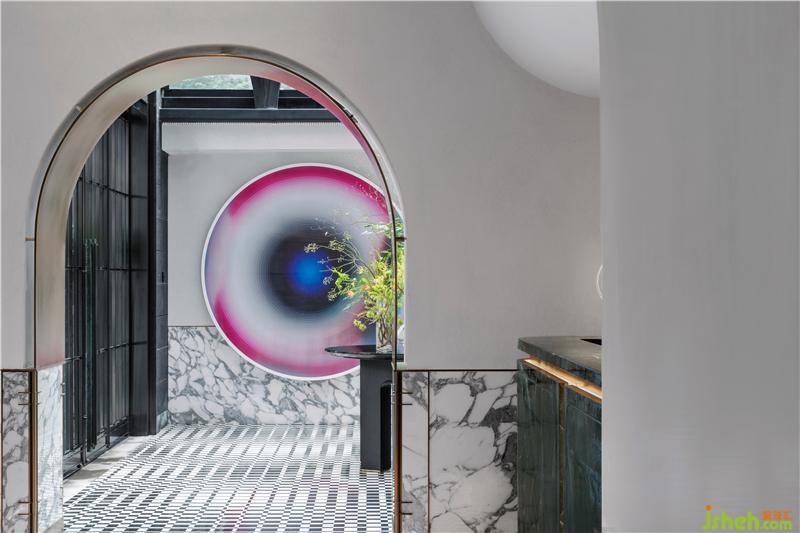 颜磊直指全球视野下的社会生态,将宗教情结与现代主义、经典与当下进行整合,通过抽象艺术手法进行表现,酒店设计创造彩轮这一视觉符号,给人一种陷入时空隧道般的体验。