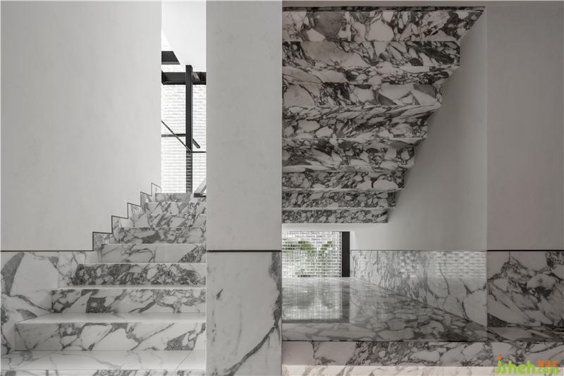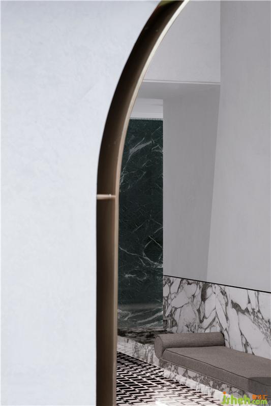 灵动的大理石纹给纯粹的几何体增添了生命力,形体与花纹合并分离、融合叠加、交错互补,以一种新的方式探索空间、层次和韵律之间的互动,诠释轻奢空间的别样美感。