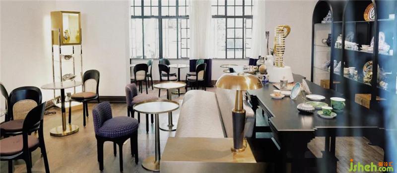 白墙壁与马赛克花砖玩味出几分波普艺术的风情,又填复古黄铜灯,映照与记录光辉,勾勒出老上海风情的繁复记忆。