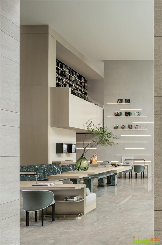 营销中心设计开放的空间形态打造出多功能的阅读区域。阅读、商业、社交等多重情境在此融合,设计师不是单纯的将丰富的生活场景叠加,而且通过艺术、人文、商业等功能的平衡呈现,希望带来一种更为舒适的沉浸式生活方式体验。