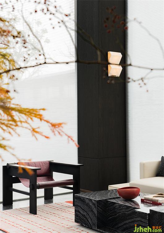疏影横斜,艺术化与戏剧性叠加,烘托出一个层次分明的会客区域。