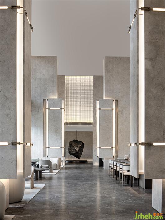 艺术装置将江心屿的形象化作“孤屿”的缩影投射在设计中。跳跃的活力造就出生气,设计延续自然形态线条的精髓,与空间形成一场静默的对话。