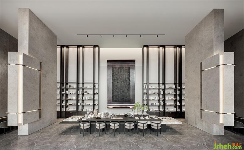 温州售楼处设计将沉稳冷静寓于材质肌理中,灯光的柔和平衡金属的温度,在布艺、木质、大理石等自然材料的叠加使用中营造质朴相融的静谧氛围。