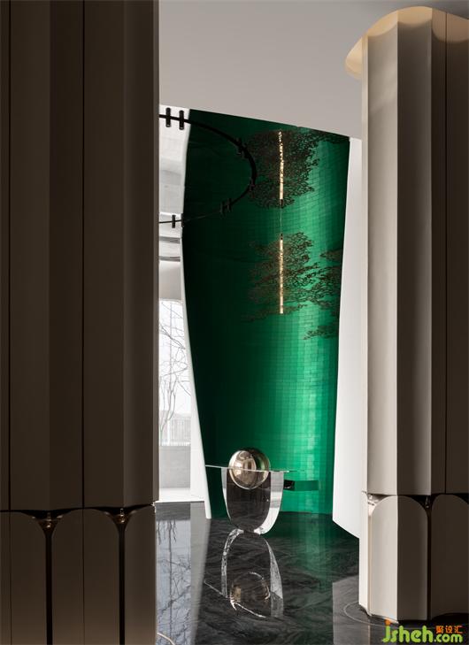 镜面将日光反射,折射出无数的棱镜形式,武汉售楼处设计在一片又一片绿色光砖上映出郁郁葱葱的森林。