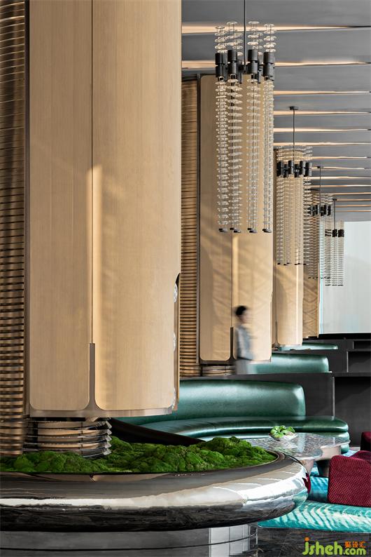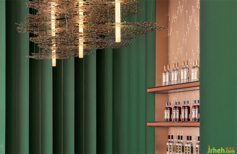 洽谈区吊灯拟态雨滴穿过树林洒落到地上,由此便可开启大自然的篇章……