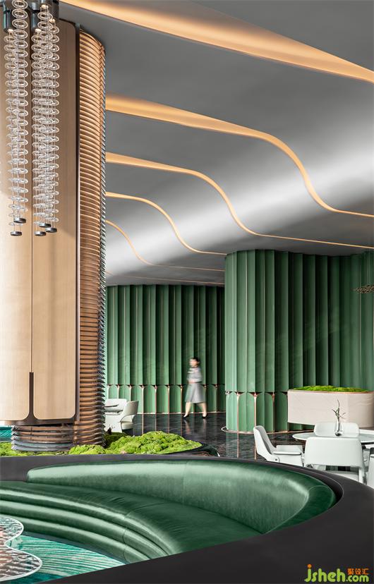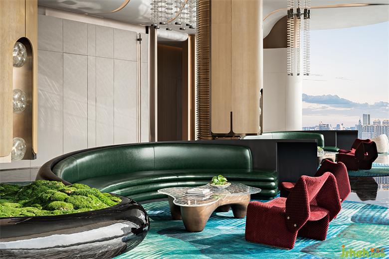 WJID 将绿色植入现代空间平衡色彩与材质尽显空间独有的高奢品质追求人与自然共生打造一座林隐都市的私人岛屿。