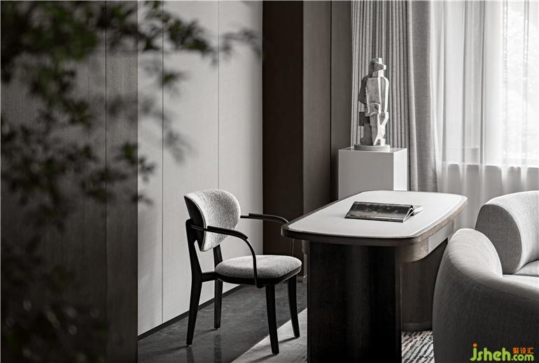 东境润府营销中心设计不同层次的灰度铺陈外化的中庸之道,明晰的线条是内不化的底线原则,可总有些意外,打破原有的底线,延伸出既有的轨迹,化成别样的意趣,构建出更为有趣的一生。