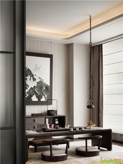 交叠的皮革被露珠依赖,花的香气从岩石中散发。杭州缦云样板房设计大面积底色归纳为笔墨,唤起本色,庄子逍遥一问,天之苍苍,其正色耶?天地自然浓缩成人生百味,散射的光辉包容了一切。
