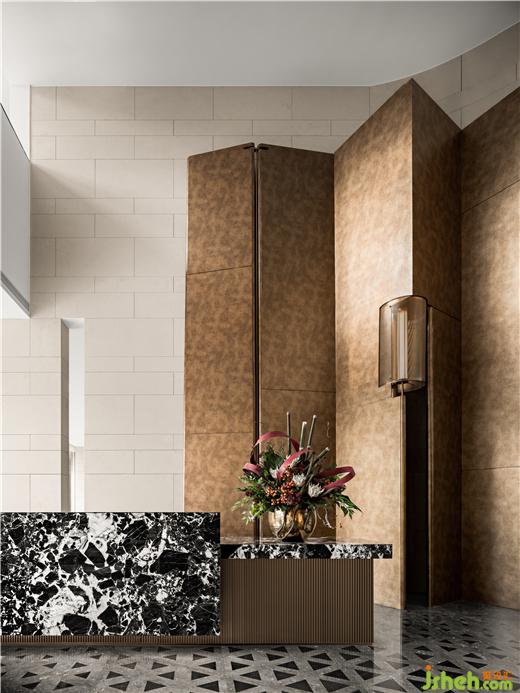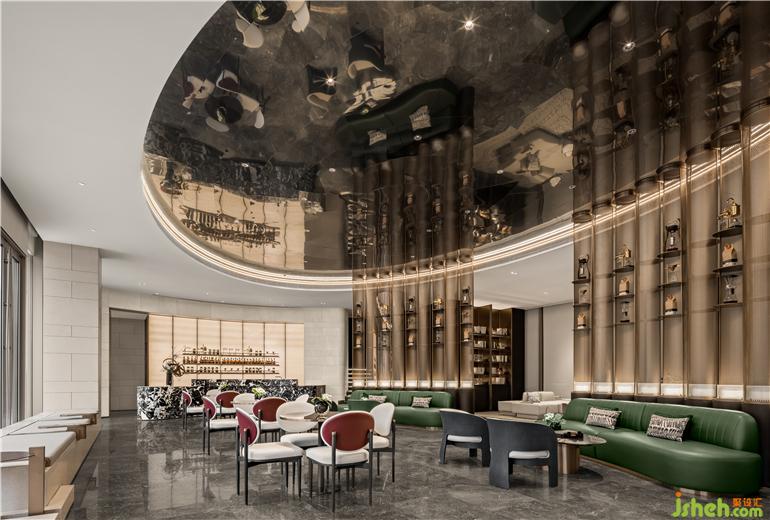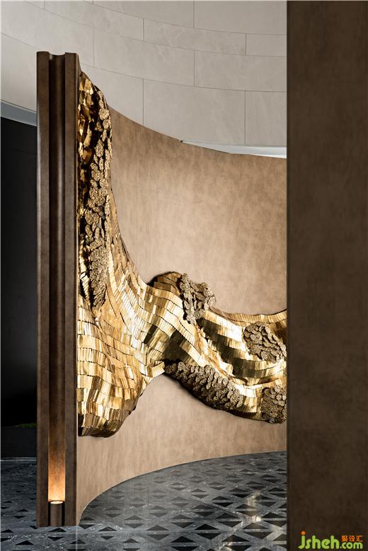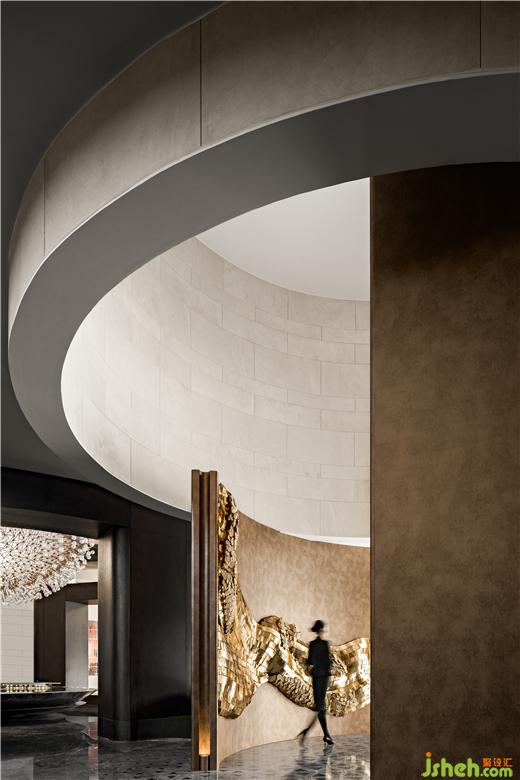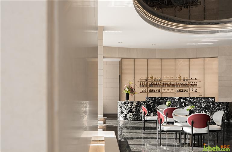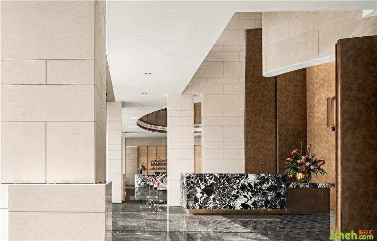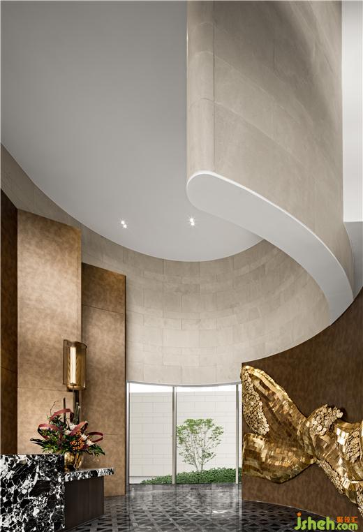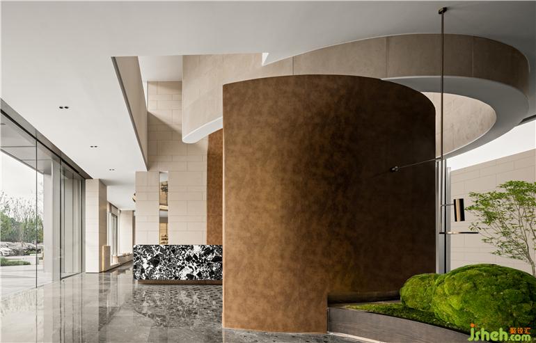 无锡金地华著营销中心设计坚持自然造物的设计哲学,挖掘东方美学的独特意境,“金石雕篆”的墙体与“水波荡漾”的大理石前台巧妙融合,历史与自然的在地元素于空间中游离。