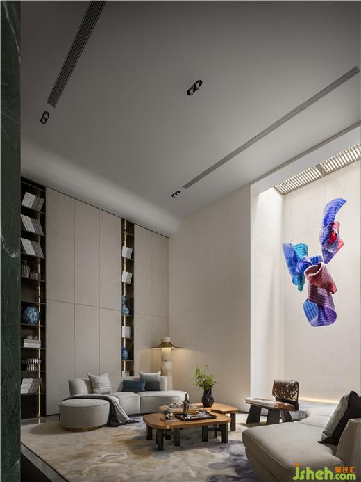湖堤柔软白沙的小丘,折合为沙发的形态,夕阳如火的湖天一色折射成燃燃的壁炉,无锡融创CHINA山水江南样板房设计无不充裕勾勒出对艺术生活的热爱。