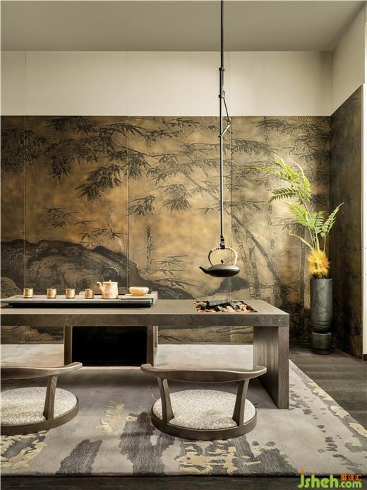 呼应了精致的品茶区,一盏吊壶化为音符,悠扬传递室内的乐章。