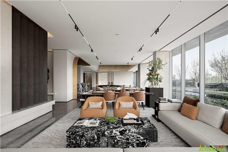 慈溪天安浔筑营销中心设计无惧岁月流转,室内永远在设计营造的悠长假期场景中,自然与超自然的设计语言在动态的平衡力,定格为都会顶层思想生活方式的瞬间。