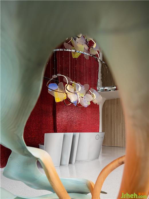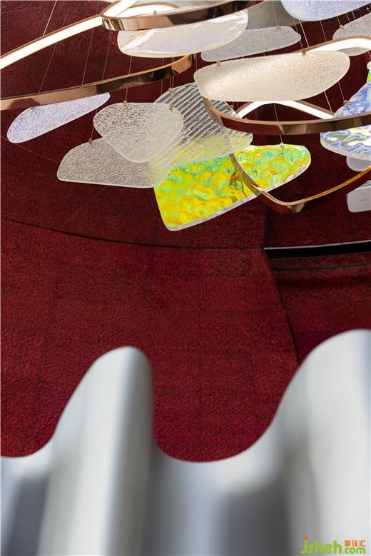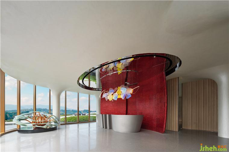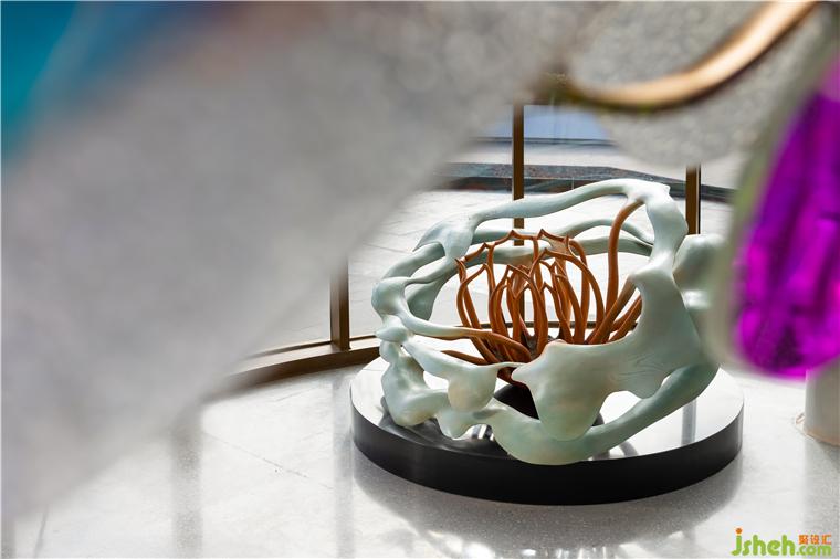 仿若水上芙蓉的陶瓷装置,重庆营销中心装修设计呈现柔软、优雅的科技之美。