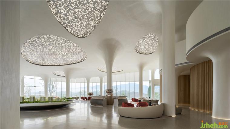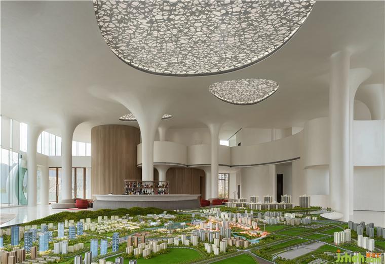 柱体如同生长的植物围合中央“水庭”,重庆营销中心装修设计将人与环境链接,心灵与精神的体验,对空间体验感的深度剖析后,打造出让客户感受愉悦且印象深刻的场所。