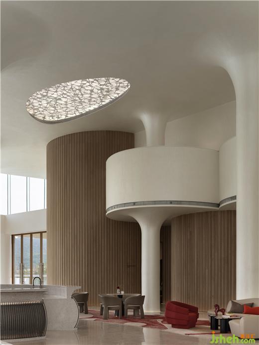 无形的光影包裹空间,呈现出质地湿润的体量感。虚与实融为一体,产生丰富的温度与表现力。