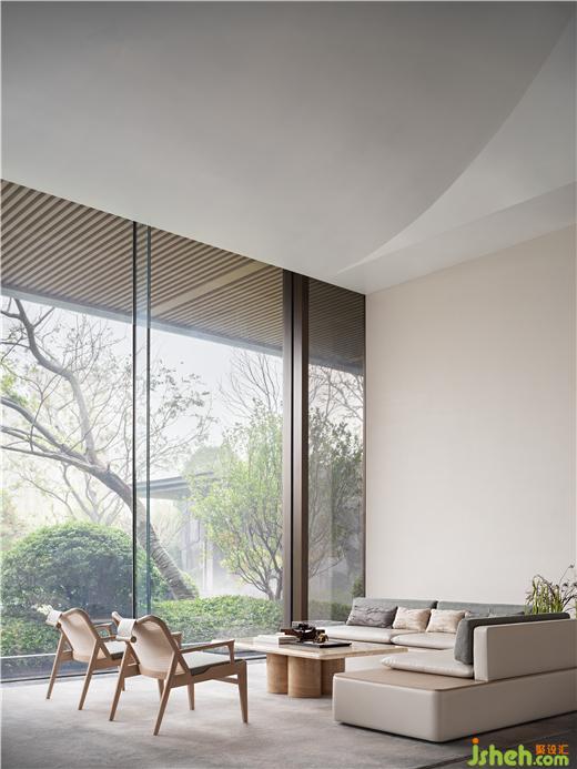 洽谈区大面积的留白为光线提供充分的自然折射,室外园景透入,呈现沉静舒适的气息。