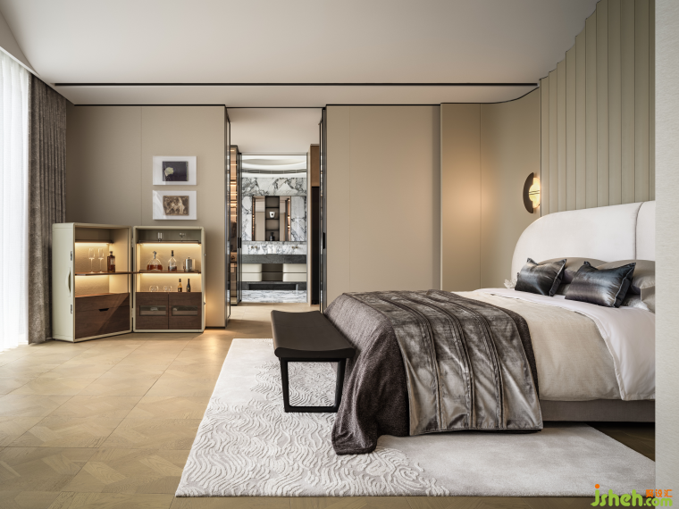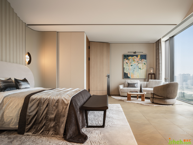 “我们在卧室营造一种静谧的奢华感,把空间更多让位于⻛景,居住者获得更多精神的滋养。”——黄全