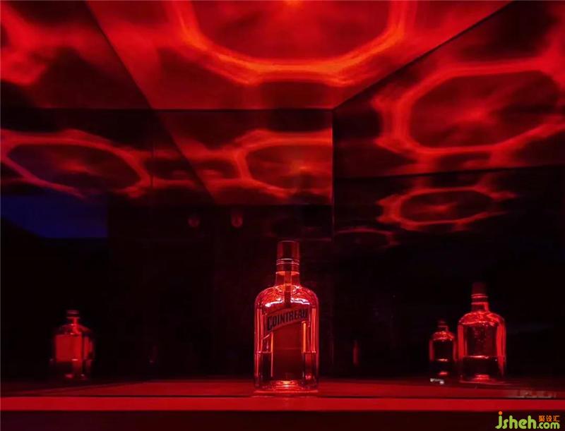 我们将这种体块关系和层叠感运用在了整体酒吧装修设计当中,比如刻意拉长吧台的跨度,以突出它的核心作用;比如后吧台的Logo墙,用阵列式的发光亚克力组合来加强消费者的视觉印象。