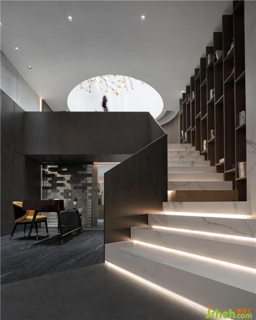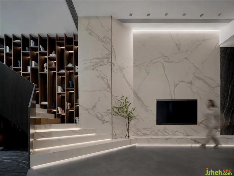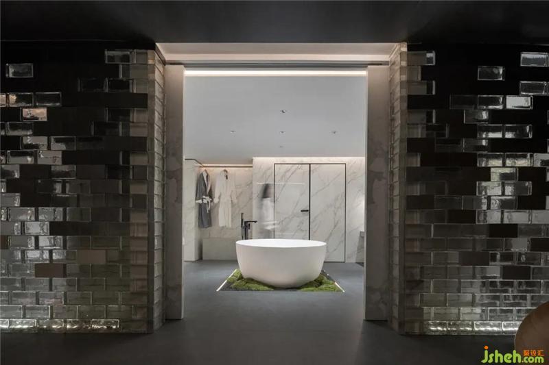 卫浴的灯光透过玻璃墙,若隐若现的身影与悬浮的岩板砖重合,多了点小趣味。“扎哈石”边长出了苔藓,展厅装修设计被湿润的空气滋养着。你浸着牛奶浴,香气扑面而来,一天的疲惫烟消云散。