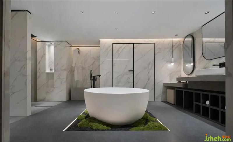 The bathroom lighting through the glass wall, looming figure and suspended rock tiles overlap, more fun. Moss grows on the edge of "Zaha Stone", which is nourished by moist air. You soak in milk bath, aroma comes to your face, the exhaustion of the day disappears.