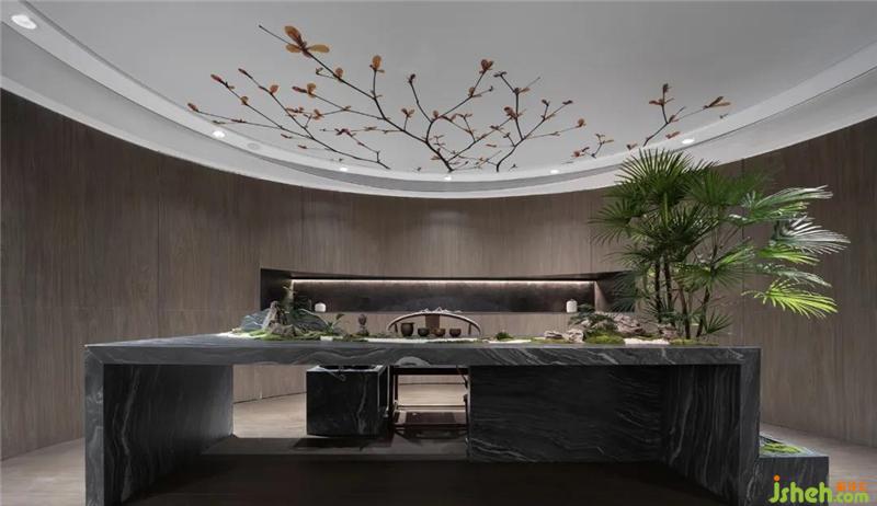 休闲时光,你坐在“流川银”茶台前,泡上一壶龙井,听着音响里的山水虫鸣鸟叫,拨弄拨弄蕨类细石展厅装修设计,独享这一切。