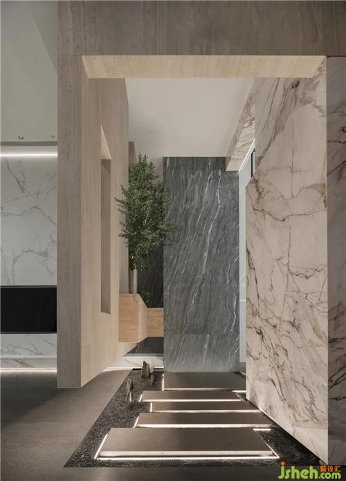 有时候也会离家远行,遇见了许多美好,想全部带回你私享的这片天地。“千层岩”就好像大地的肌理,展厅装修设计你把心里的那棵树种在了一进门就能看到的地方。