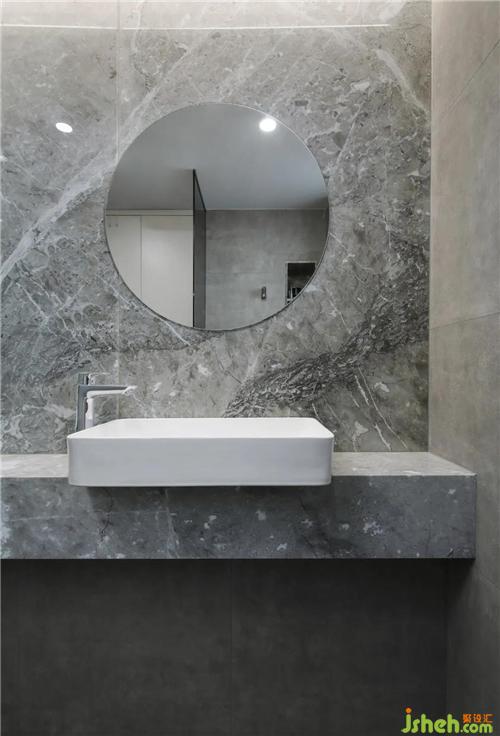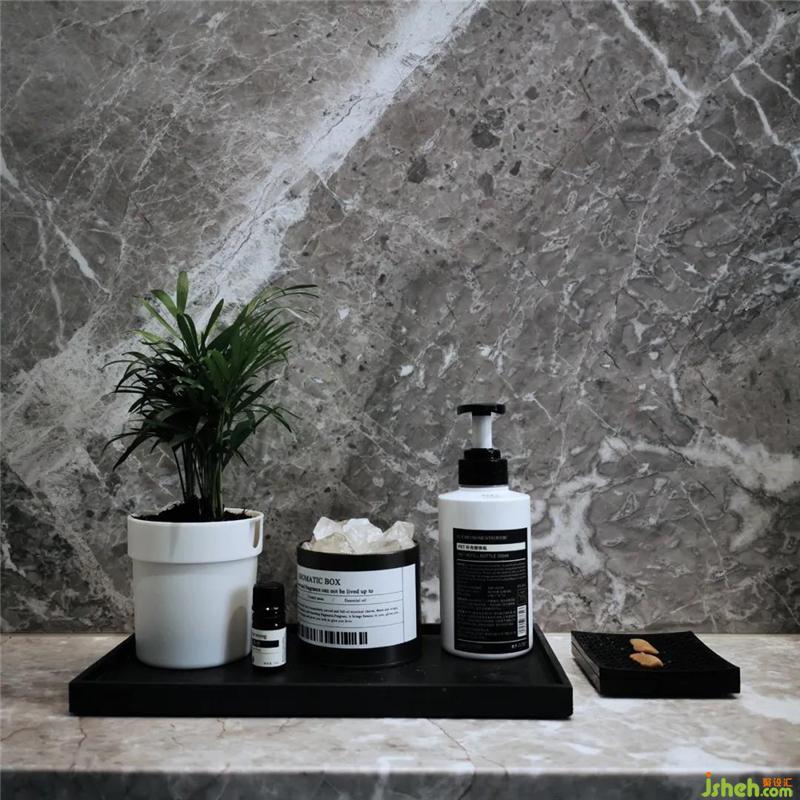 超薄墙体“偷”出来的洗手台空间,室内设计师摆设了精油香薰,点缀出生活的仪式感。