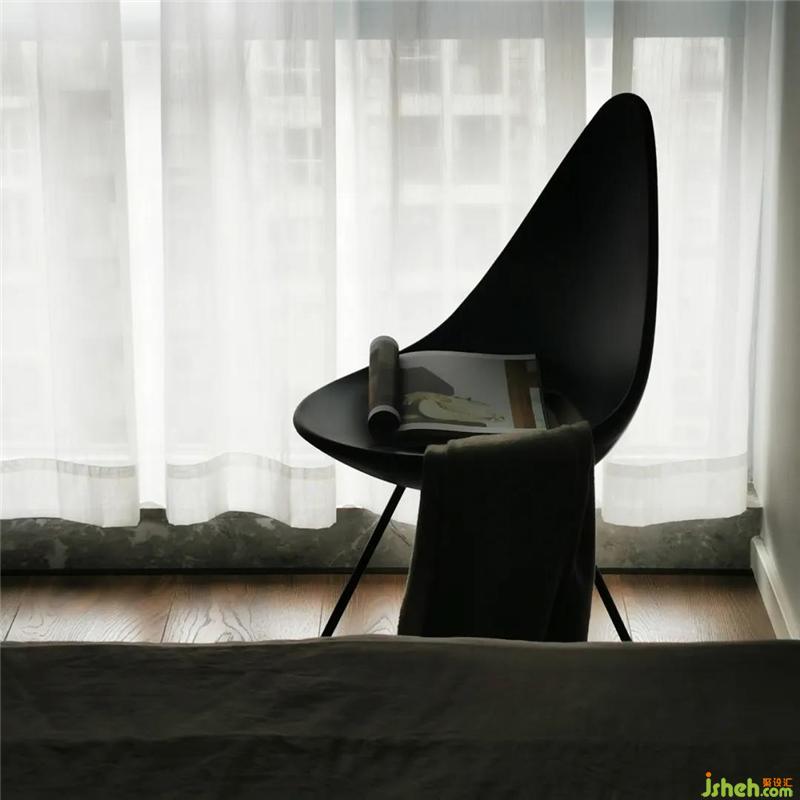卧室是静谧的,柔和的灯光映射在低饱和度的色彩里,室内设计师舒心入眠。