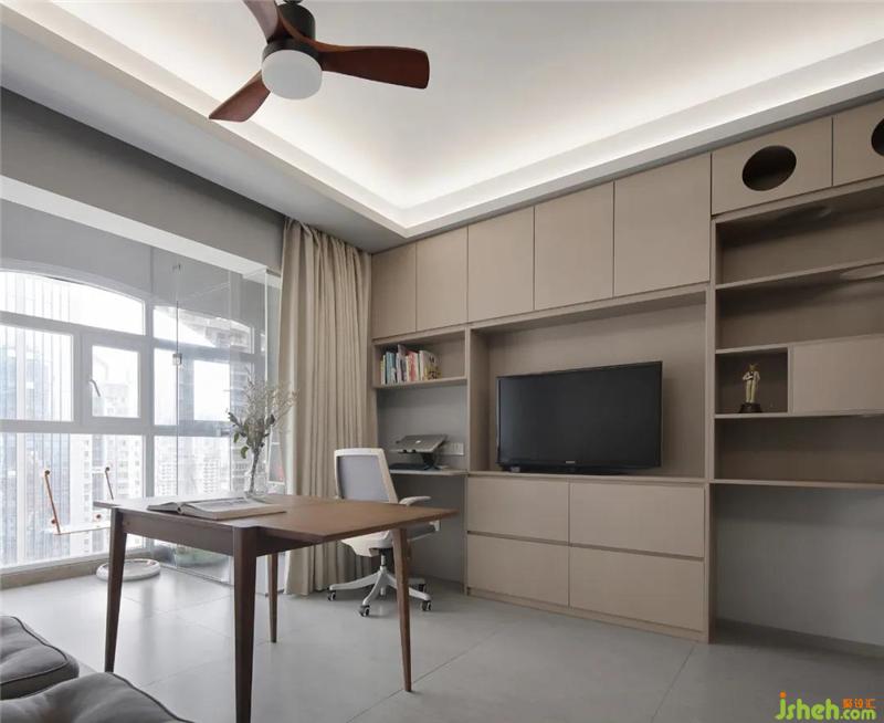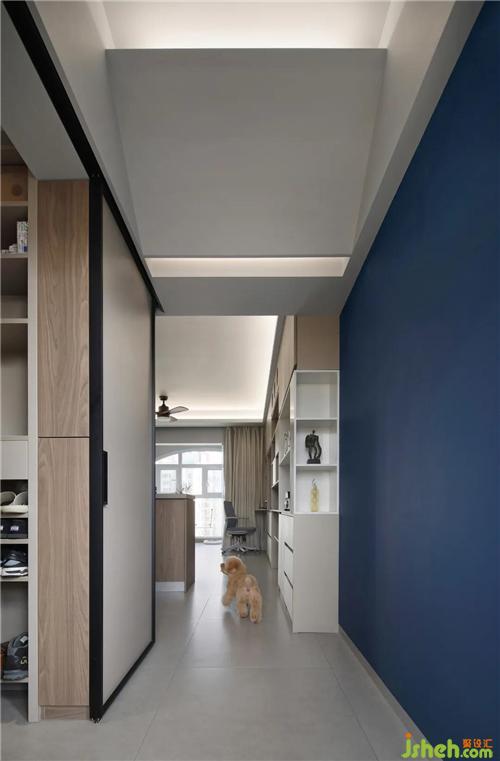 On the left side of the hallway, we are the first space magic to customize large size walk-in shoes and hats for the two bedroom apartments. Some of these functions are designed to put pets training and pet outfits in a neat and orderly manner. The ceiling treatment of smallpox ensures maximum height of the original smallpox and increases the light source of the lamp trough.