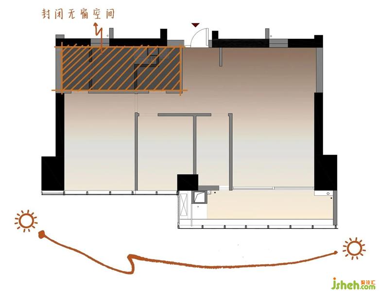此案的痛点,是建筑本身就存在的短板。深圳天鹅湖花园家装设计户型虽方正,却只有单面采光,使得空间深处偏暗,特别是西北角的两个无窗暗卫,在生活中会造成不小的困扰。